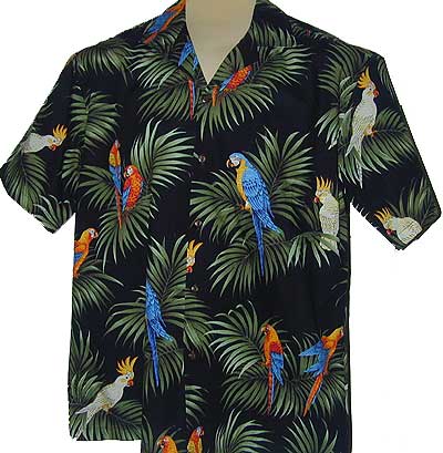 Hawaiian Shirt Design by Royal Hawaiian Creations, Beautiful Tropical Parrots...